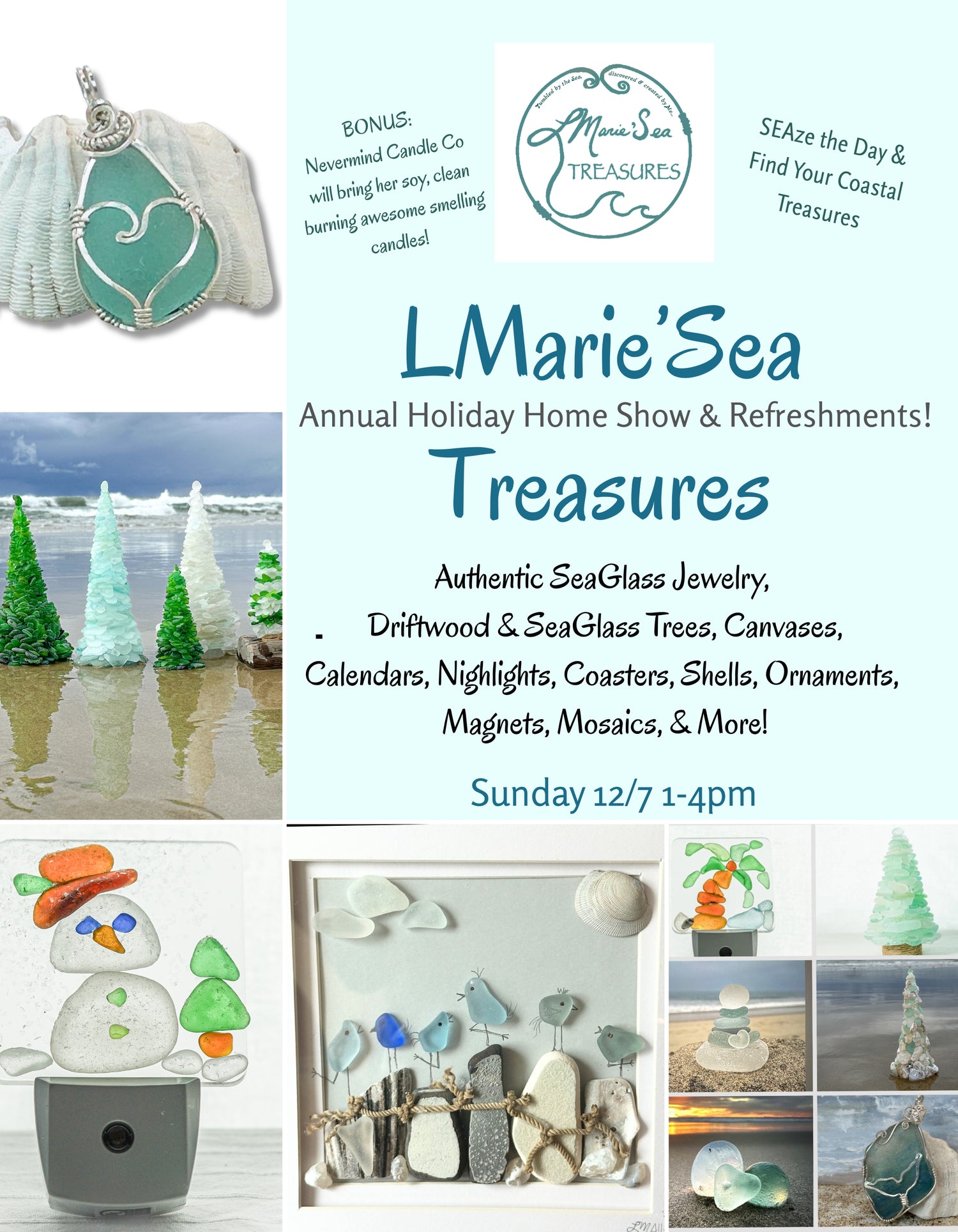 COME: bring home some ocean-inspired pieces, sign up for a fun creative class (jewelry, trees, nightlights, or decoupaged shells with seaglass accents), or simply stop by for a wave of seaside inspiration. I also love creating custom commissions if you have a special idea in mind.